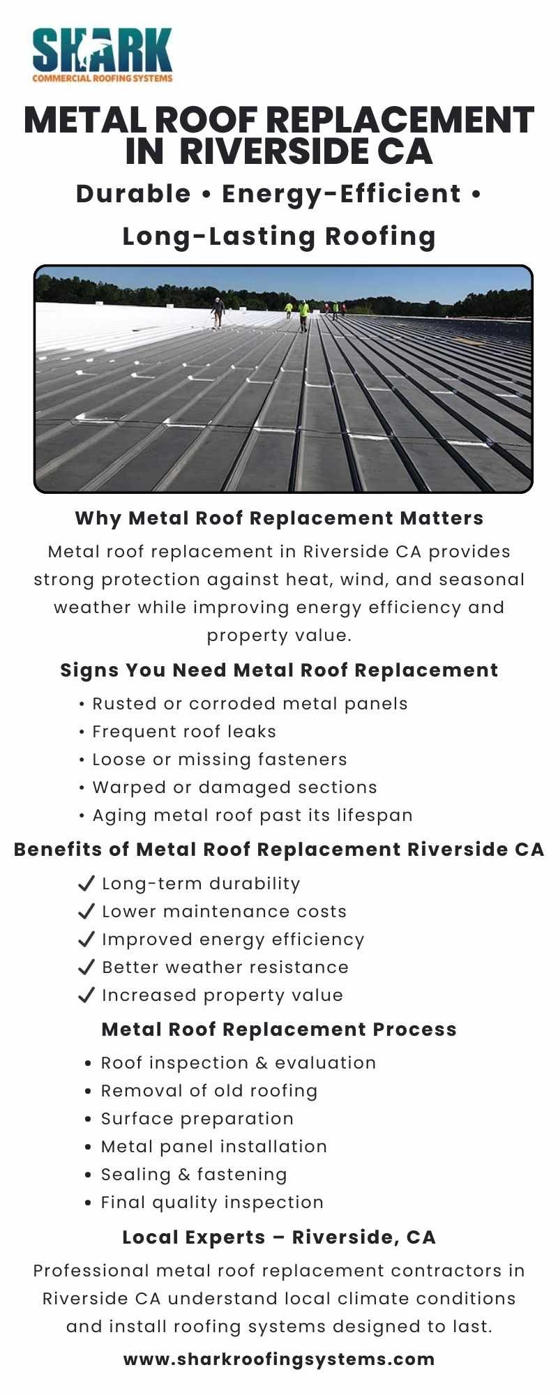 Upgrade your property with professional metal roof replacement in Riverside CA. Discover the benefits of durable, energy-efficient metal roofing and long-lasting protection.